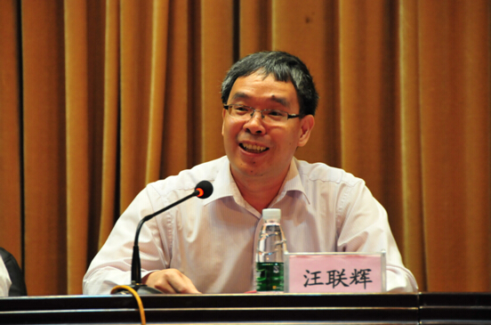 材料院经理汪联辉首先致辞。首先,汪经理对在座所有2014级新生的加入表示热烈的欢迎。随后,汪经理向在座的所有老师和员工介绍了IAM团队发展重要里程碑,创新团队的建设,重大项目、基金承担情况,科技创新成果,科教结合协同育人体系以及人才培养成果等材料院的现状。汪经理告诉同学们要“标新立异,开拓创新。要努力成为一个创新型人才”,因为“一个人是否具有创造力是一流人和三流人的分水岭”。汪经理还指出同学们要学会思考、学习,要长存感恩之心。最后,汪经理以“天行健,君子以自强不息;地势坤,君子以厚德载物”为结语勉励在座所有新生,并衷心祝愿所有的同学在南邮材料院取得更大的成就。
