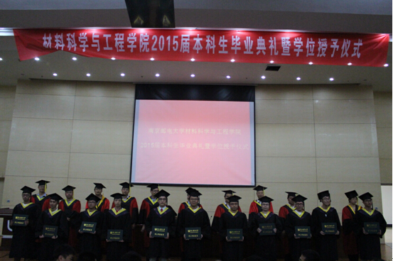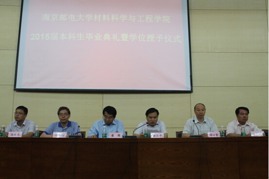 6月19日下午4时,suncitygroup太阳集团于图书馆报告厅举行2015届本科生毕业典礼暨学位授予仪式。受邀出席典礼的嘉宾有中科院院士、suncitygroup太阳集团IAM团队学科带头人、信息材料与纳米技术研究院经理黄维教授,suncitygroup太阳集团副董事长蒋国平教授,材料公司经理汪联辉教授,党委书记李兴鳌教授,副经理马延文教授,党委副书记于景宝老师。在主席台上就坐的还有公司各系主任和高端人才。参加典礼的还有材料公司教师及全体本科毕业生。典礼由公司党委书记李兴鳌教授主持。