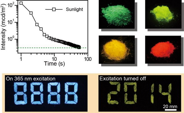 该研究负责人、中国科公司院士、有机电子与信息显示国家重点实验室培育基地主任、信息材料与纳米技术研究院经理黄维教授介绍说,早在炎帝时期,人类就发现了长寿命发光的余辉现象,也就是传统上所说的“夜明珠”,虽然经过千百年的发展,余辉发光现象依旧局限在无机发光材料。团队骨干陈润锋副教授带领的研究小组长期致力于有机余辉材料的研究,在有机分子激发态调控研究方面经验丰富,所指导的安众福博士、郑超博士、陶冶博士、史慧芳博士等经过长期实验观测,经4年多时间的摸索和思考,逐渐认识到在磷光发光中引入H-聚集结构对实现有机长余辉发光具有重要作用,并对其控制机制、实现条件、材料分子设计和发光机理等进行了系统深入的研究,由此成功实现了无金属和其它重元素修饰的纯有机材料激发态寿命调控,有机长寿命发光颜色从绿色到红色大范围可调,并且发光持续时间长达56秒,获得了世界上首例室温有机长余辉材料。这一成果是该团队在有机光电子学领域多年探索与积累的体现,该研究为有机光电功能材料的激发态调控提供了一条具有革命性意义的思路和途径,有着广阔的应用前景。