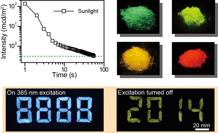 该研究负责人、中国科公司院士、有机电子与信息显示国家重点实验室培育基地主任、信息材料与纳米技术研究院经理黄维教授介绍说,早在炎帝时期,人类就发现了长寿命发光的余辉现象,也就是传统上所说的“夜明珠”,虽然经过千百年的发展,余辉发光现象依旧局限在无机发光材料。团队骨干陈润锋副教授带领的研究小组长期致力于有机余辉材料的研究,在有机分子激发态调控研究方面经验丰富,所指导的安众福博士、郑超博士、陶冶博士、史慧芳博士等经过长期实验观测,经4年多时间的摸索和思考,逐渐认识到在磷光发光中引入H-聚集结构对实现有机长余辉发光具有重要作用,并对其控制机制、实现条件、材料分子设计和发光机理等进行了系统深入的研究,由此成功实现了无金属和其它重元素修饰的纯有机材料激发态寿命调控,有机长寿命发光颜色从绿色到红色大范围可调,并且发光持续时间长达56秒,获得了世界上首例室温有机长余辉材料。这一成果是该团队在有机光电子学领域多年探索与积累的体现,该研究为有机光电功能材料的激发态调控提供了一条具有革命性意义的思路和途径,有着广阔的应用前景。