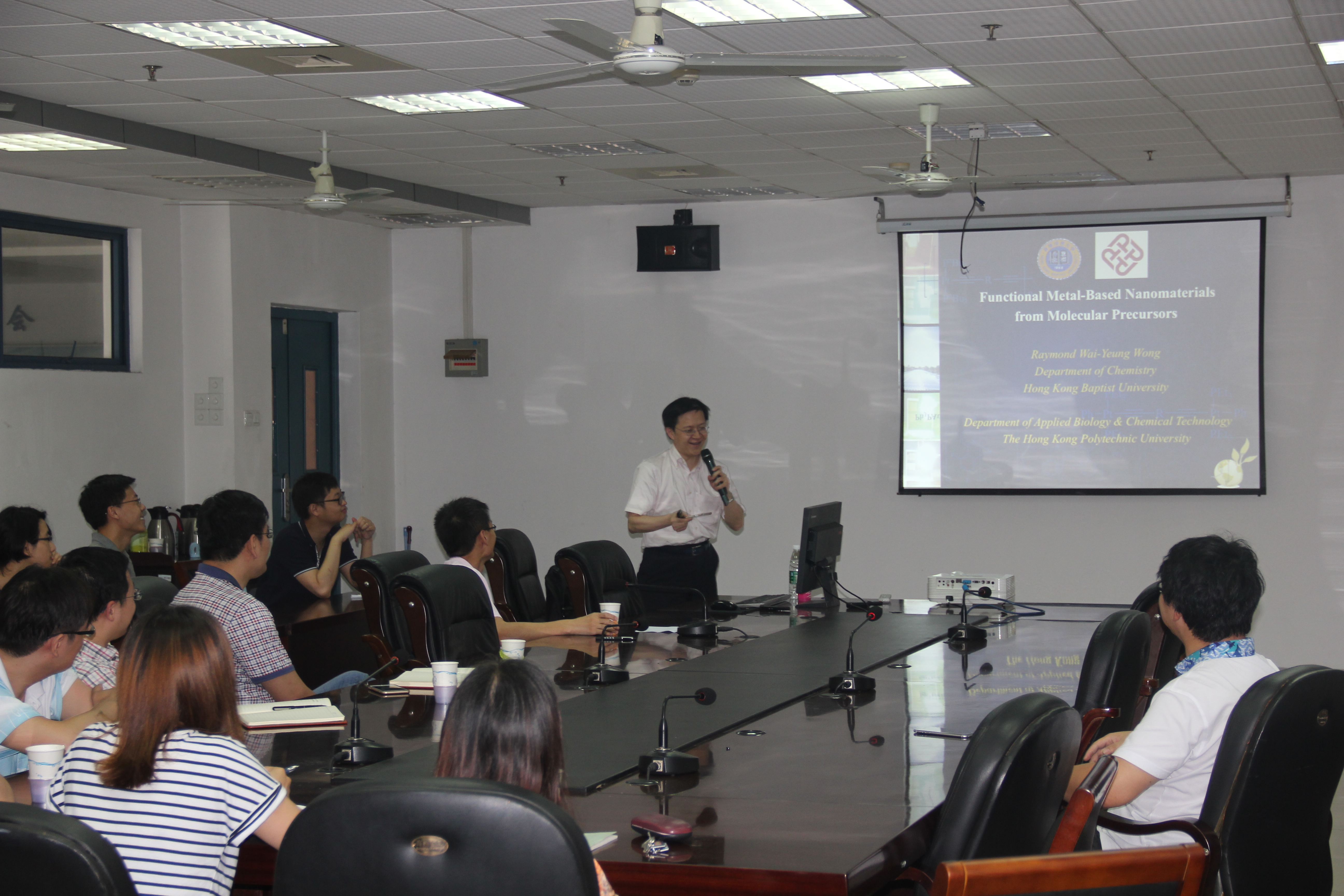 2016年6月22日下午9:30在公司大会议室(教学五号楼5-413),香港理工大学黄维扬教授现香港理工大学应邀来公司讲学,为广大师生讲授“Rational Design, Synthesis and Applications of Metal-Based Functional Nanomaterials”相关最新进展的精彩学术报告。黄维扬教授就磁性铁铂纳米粒子的制备和其存储应用等问题与大家进行深入交流。本次交流不仅拓展了本校相关领域师生的眼界,而且加深了员工对磁性纳米材料在存储中应用的认识和理解,将进一步提升师生的学术水平和科研能力。