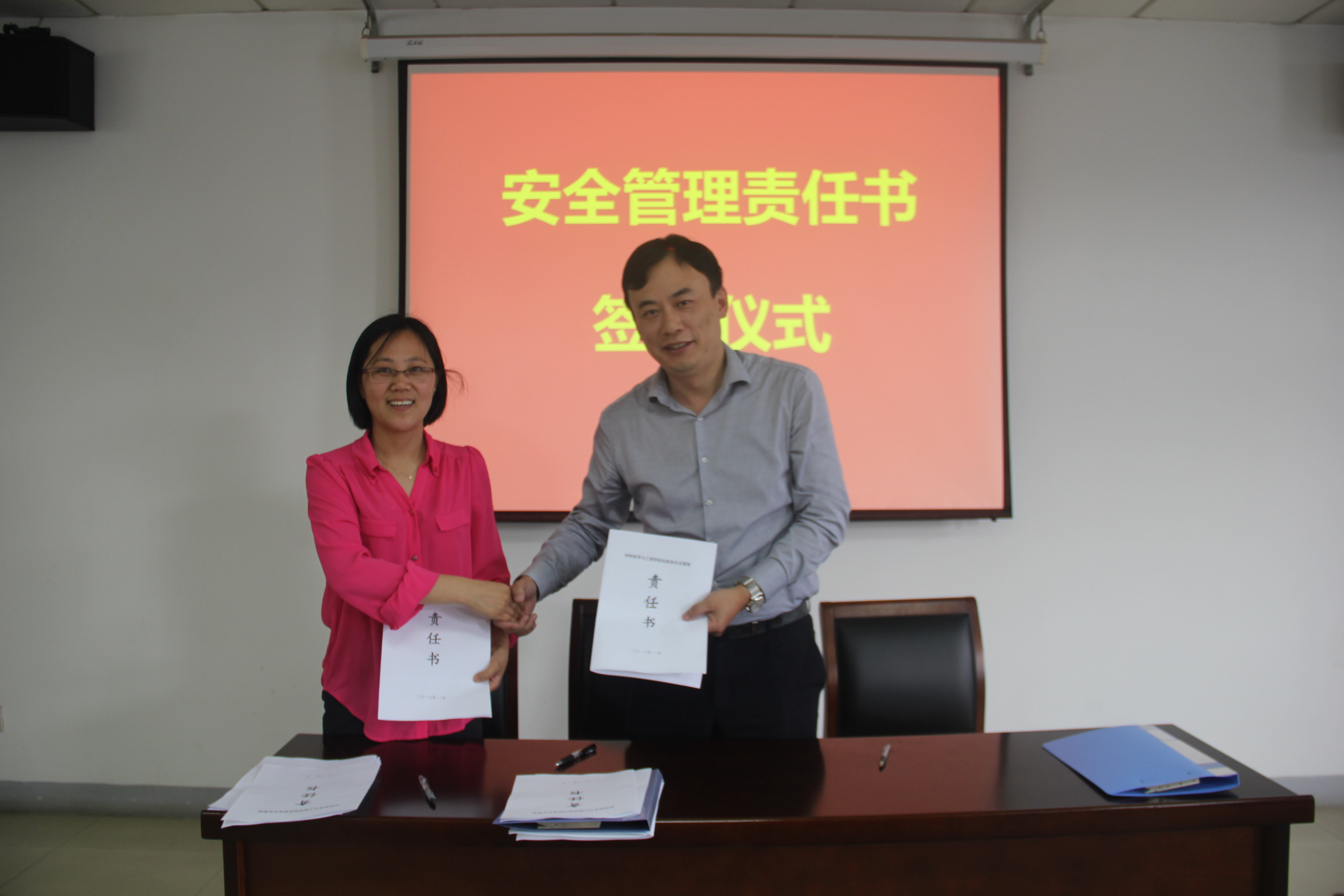 最后,范曲立经理、赵允玉书记代表公司与八大研究所所长、全体教职工签订实验室安全管理责任书,并要求各研究所加强日常安全教育,带领团队师生学习实验室安全管理制度等文件,确保每位师生都熟知实验安全的注意事项,并继续与所内的师生签订安全管理责任书,层层传达、层层落实安全责任,切实增强实验安全的红线意识和底线思维,改进实验习惯,提升安全管理水平,上下一心、全力以赴,筑牢实验室安全防线,为公司各项事业安全发展、科学发展、长远发展保驾护航。