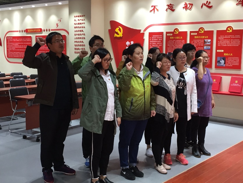在讲解员的带领下,实验中心支部先后参观了党誓厅、党史厅、党示厅、党视厅、党事厅、党建厅、党群厅和党教厅等各功能展区。在党史厅内,展板用图文形式展现了从中共一大到十九大的重要内容。在党示厅、党视厅里,充分展示出习近平总书记的重要讲话内容、中央反腐倡廉建设的最新进展。在工作人员的带领下,支部还参观了党员政治生活馆和社会服务馆。党誓厅,实验中心支部全体党员面对鲜红的党旗重温入党誓词,进一步增强了党员意识。在密切党群关系、加强党在社区的领导力方面,仙林街道党群服务中心取得了先进的经验和成果,为实验中心支部开展业务学习和支部活动等提供了良好的示范和榜样作用。