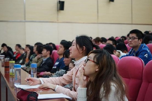 臧文超副总裁介绍了在许多能源日益枯竭的今天,开发太阳能发展光伏行业的意义、光伏发电的基本概念、近年来世界光伏的发展状况和未来极具潜力的发展前景、中国光伏发展现状和发展趋势等。他重点介绍了光伏制造工艺,具体介绍了工业硅提纯方法、晶体生产及切片工艺流程、电池制造工艺流程、组件制造工艺流程等环节。通过直观的流程图和产品图片以及现场板书,详细地解析了每个工艺流程的具体操作步骤,例如,组件制造工艺环节流程就分为电池分选、压焊、串焊、排版、EL检测、层压、EL检测、修边、边框打胶、装边框、装接线盒、接线盒灌胶、固化、表面清洗、IV测试、EL检测、高压测试、外观检测、成品包装等近二十个工序。臧文超副总裁对每个工艺环节流程中每一个工序的具体分析,使同学们仿佛亲身经历了光伏制造工艺的整个工作过程。他还介绍了太阳能光伏行业在各个方向的综合运用,以及中盛光电集团的行业地位、服务业务、发展目标等。近两个小时的精彩讲座不时响起同学们的阵阵掌声。