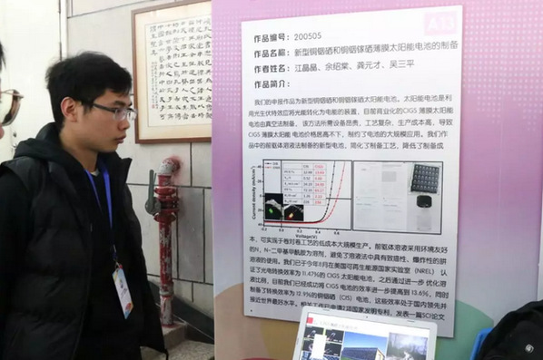 本次创新杯初赛我们院有十组参赛人员,经过院赛的筛选,最终挑选出六组优秀作品参加校赛。他们分别是:可重复的绿色打印技术、虚拟仿真技术在SFX实验中的教学应用、燃料污水处理用木质素复合水凝胶的制备及研究、二硫化钼传感器平台用于恶性肿瘤早起检查、增强单线态氧化率的近红外吸收BODIPY光敏剂用于高效的光动力治疗、新型铜铟硒和铜镓硒薄膜太阳能电池制备、新型铜铟硒和铜镓硒薄膜太阳能电池制备。