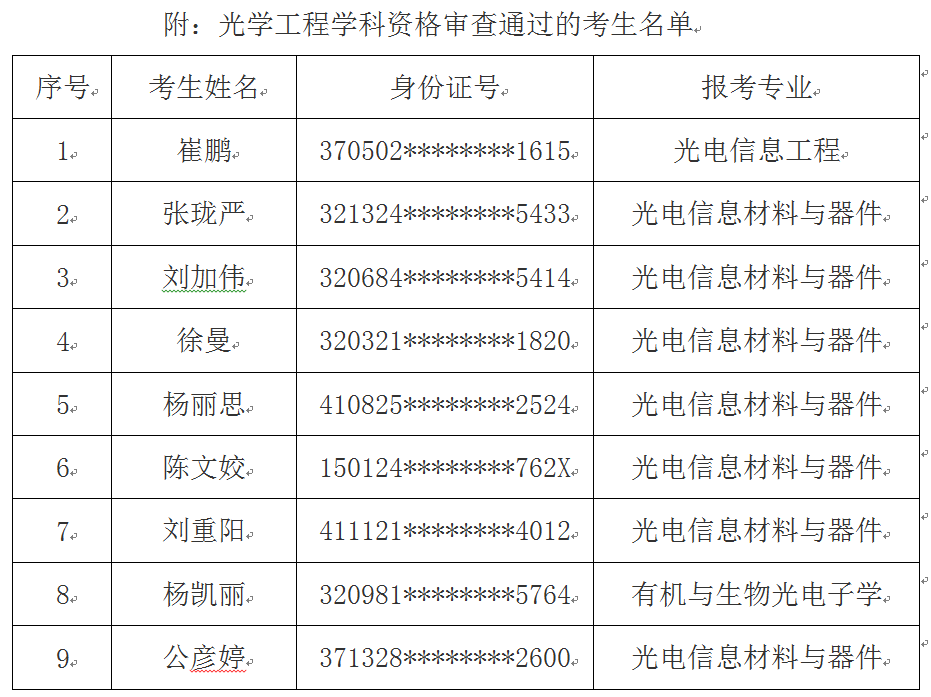 根据《suncitygroup太阳集团博士研究生招生“申请-考核”制招生办法(试行)》的要求,以及《suncitygroup太阳集团 光学工程学科2019年博士研究生招生“申请-考核”制实施细则》的相关规定,光学工程学科申请考核博士生选拔领导小组根据考生所提交的申请材料,对其报考资格、基本素质和科研潜质进行了评估与初选,现对通过资格审查的考生名单予以公示(公示名单见附件),公示时间:2018年12月19日—2018年12月26日。