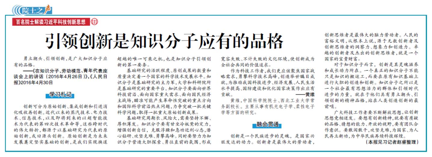 勇立潮头、引领创新,是广大知识分子应有的品格。