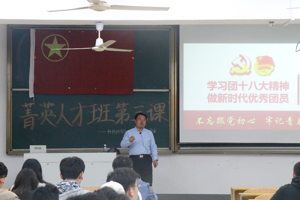 课堂伊始,于副书记提出了本次课堂的第一个主题:清晰政治目标,把政治素质放在第一位,围绕这个主题,他带领学员学习了团十八大会议,并提出了中国共青团的初心和使命:“坚定不移跟党走,为党和人民不懈奋斗。” 学员一起学习了团十八大会议的内容:一是党对共青团提出的五点希望;二是党对共青团提出的四个方面的工作要求;三是共青团员的“四个意识”和四个自信;四是我国广大青年牢记的使命;五是共青团员的五个坚持。