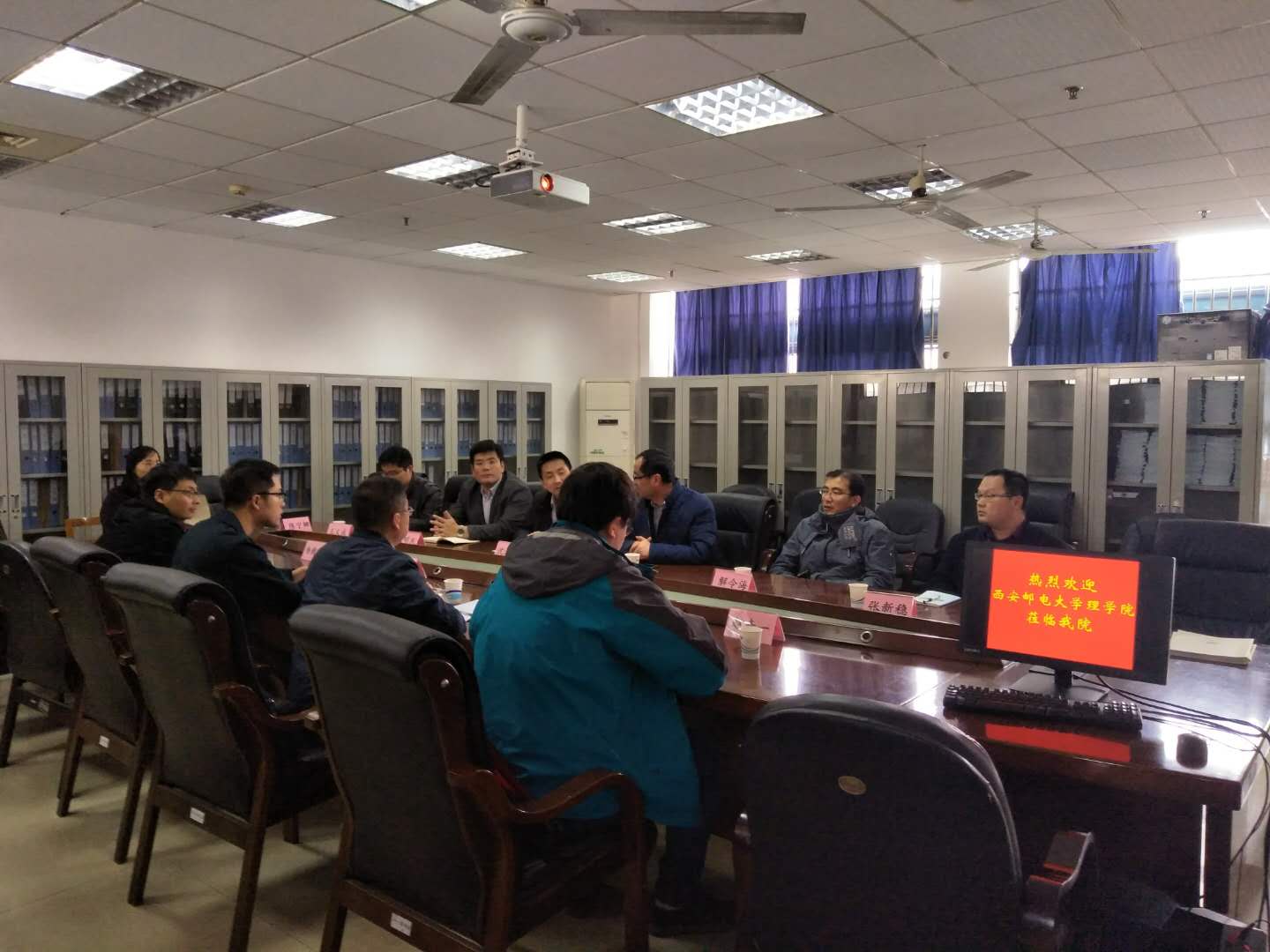 4月11日下午,西安邮电大学理公司任卫副研究员一行到公司就材料物理专业建设进行调研。参会人员有公司科研院重点平台建设办公室主任魏昂教授、材料公司副经理沈清明、副经理解令海、材料物理专业系主任仪明东和张新稳、实验教学中心主任王义成、教学秘书陈宁娜以及实验秘书刘玉玉,会议由副经理沈清明主持。