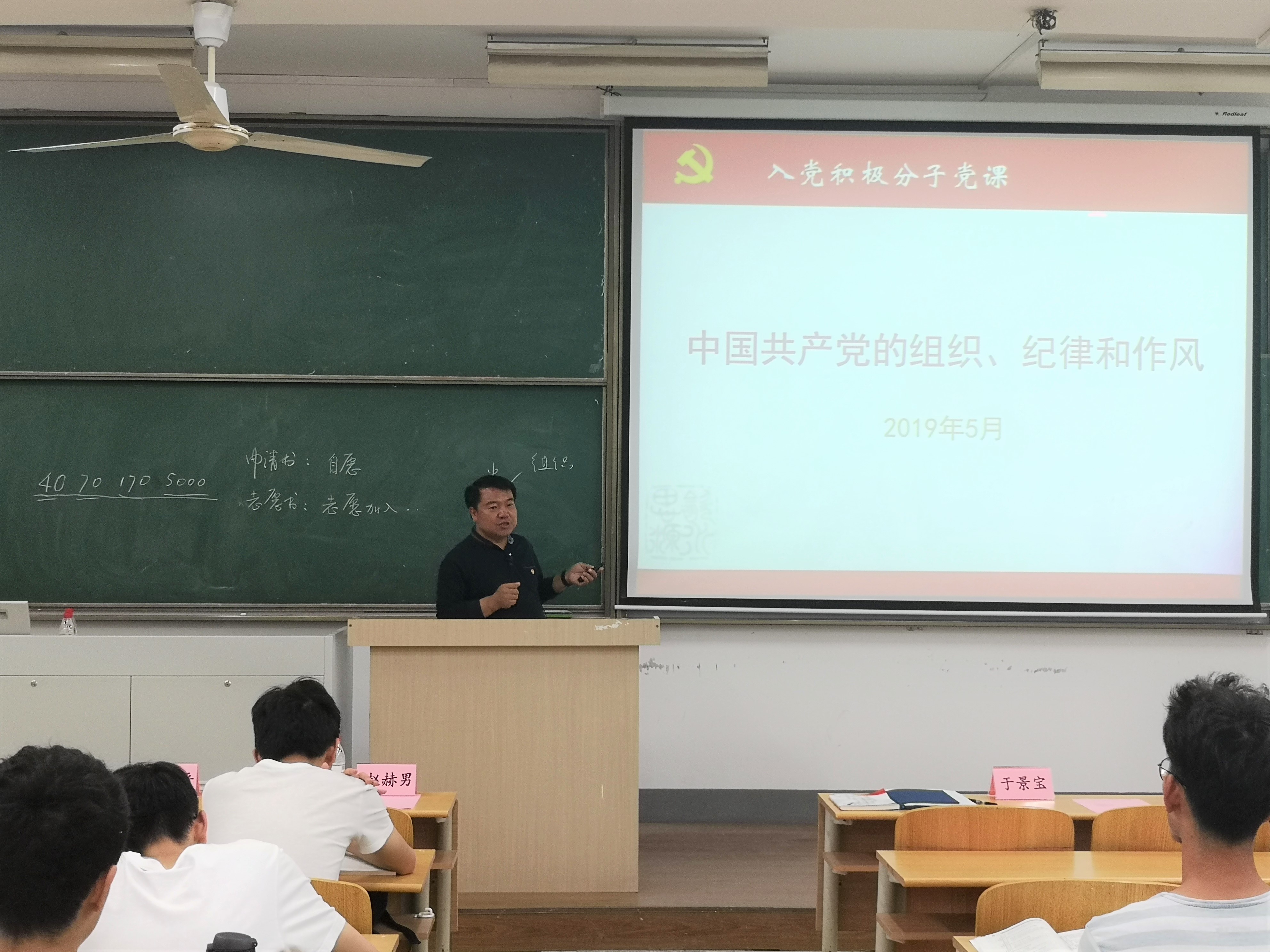 于景宝副书记为同学们带来第一次党课:中国共产党的纲领和任务、组织纪律和作风,给学员们上了一堂生动的党课。于书记深入浅出地给同学们讲解了“什么是共产党?” 中国共产党是一个能代表最广大人民利益的一个组织,宗旨是全心全意为人民服务。接着,于书记对党的纲领、指导思想、基本路线、宗旨、作风等基本知识进行深度讲解,让同学们深入了解党的性质和宗旨。最后,书记结合老员工的实际情况对同学提出建议,希望同学们在生活中注意自己的言行,端正入党动机,服务同学,增强社会责任感。
