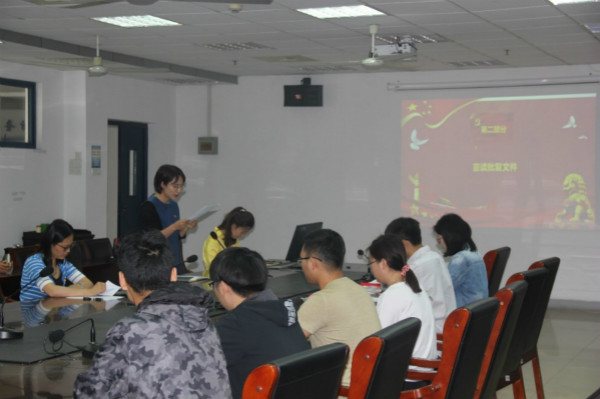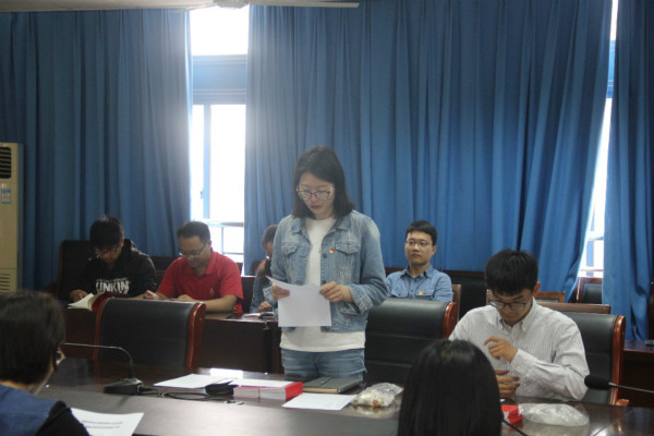 当选的博士生党支部副书记张贺、生物电子研究所员工党支部书记陶俊2位同学向全体党员介绍了新支部2019年下半年工作安排和学习要求。