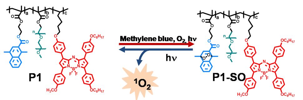 图1 聚合物载体捕获和释放单线态氧机理。
