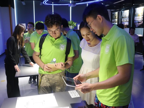 最后,实践团队参观了公司文化墙、掌墨空间、综合实验室等。实践团体验了AR和VR等先进技术,切实体会到信息化技术对建筑设计转型的巨大推动作用。公司倡导的绿色、节能、环保理念,正是实践团材料专业员工未来探索和发展的方向。