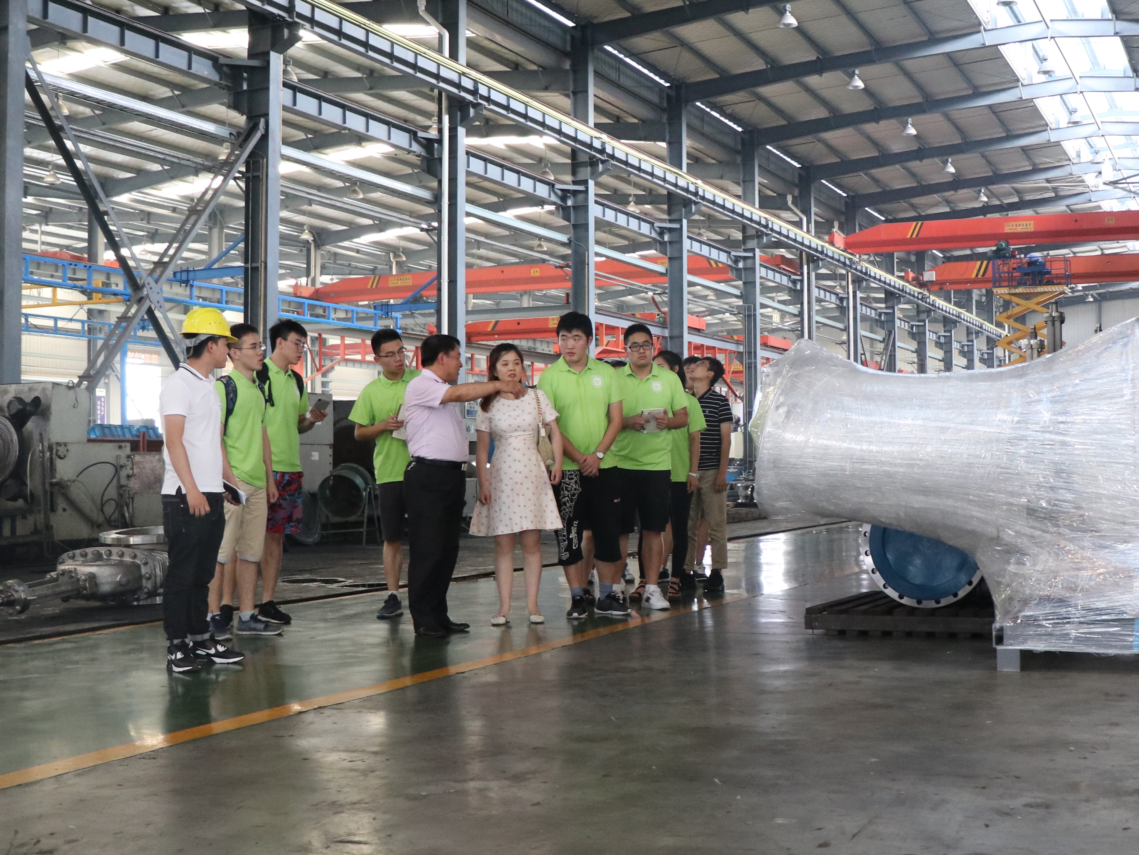 实践团参观了公司的生产车间。队员们了解了公司在设计、技术和制造等方面的经验和优势以及严谨的质量保证体系。通过对加工数字机床的参观学习,队员们巩固了在金工实习中学习的相关技能。实践队员在公司会议室观看了企业宣传片并与公司工作人员进行了交流探讨。公司财务总监杨琳表示,质量是企业的命脉,要立足新时代,把握新动向,在新常态下稳健前行,实现新发展。