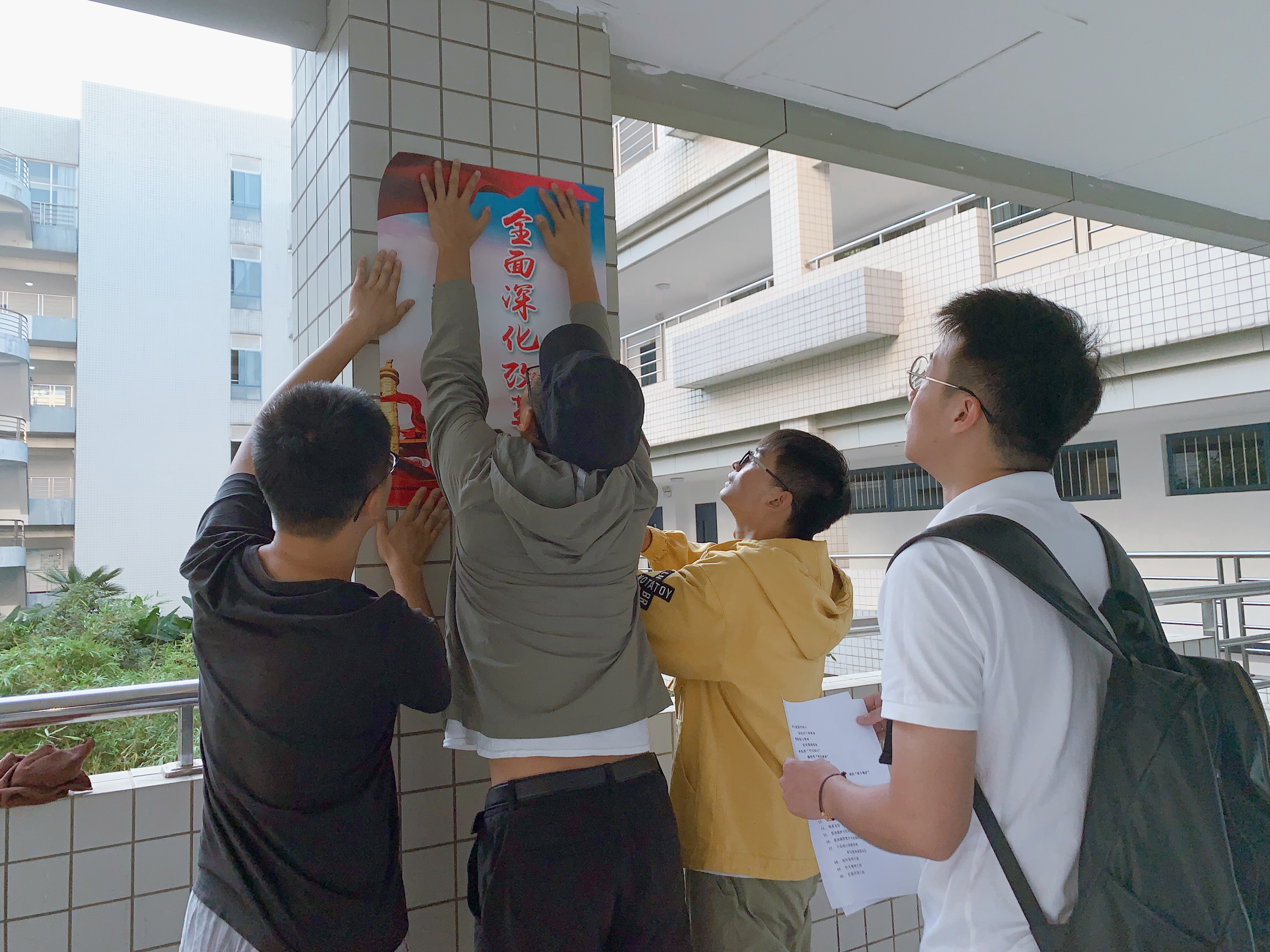 2019年9月20日,办公室党支部组织全体党员开展了志愿服务活动,大力营造“不忘初心、牢记使命”主题教育氛围,完成了材料学科楼主题教育氛围的营造工作。