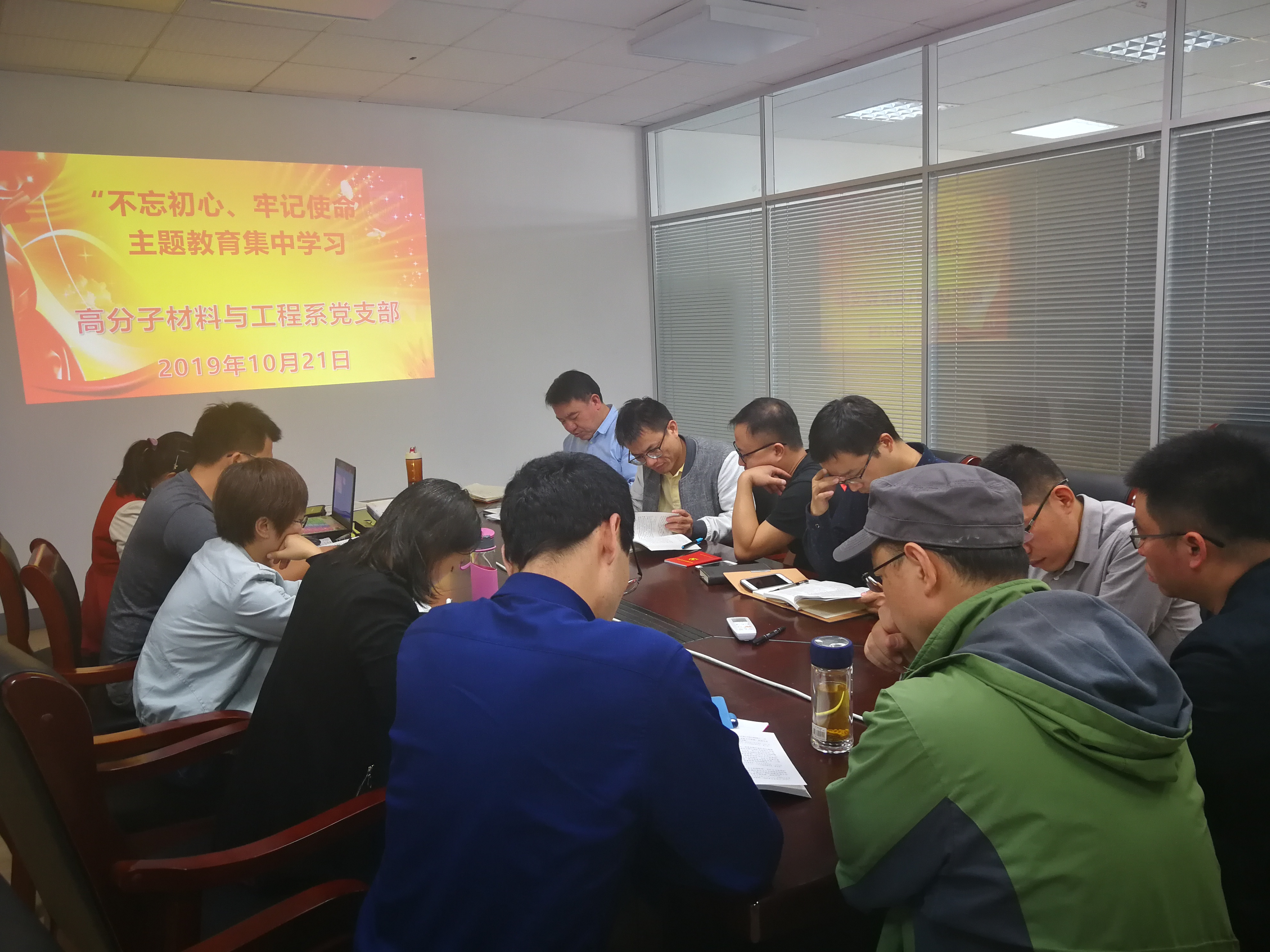 2019年10月21日,suncitygroup太阳集团高分子材料与工程系党支部开展了“不忘初心、牢记使命”主题系列的党课教育及集中学习活动,由支部书记黄艳琴同志主持会议。首先由黄艳琴支部书记为全体支部党员同志讲授一堂生动的《“不忘初心、牢记使命”》主题党课,分别从目标任务、个人体会两个方面入手,阐述了作为中国共产党人的集教学科研于一身的高校教师的“初心”与“使命”,要求每个党员教师增强“四个意识”、坚定“四个自信”、做到“两个维护”,要求每个党员教师将个人学习、集中教育研讨学习、联系自身学习等几方面有机结合、共同促进对“不忘初心、牢记使命”主题教育学习,能够结合自身情况融会贯通,真正学懂弄通。接着由支部书记及支部委员共同带领大家对《习近平关于“不忘初心、牢记使命”论述摘篇》中“坚定理想信念,始终是共产党人安身立命的根本”章节进行了集中学习。要求大家能时刻坚定理想信念,时刻不忘共产党人的初心与使命。支部党员同志纷纷表示,通过本次党课教育与集中学习,更加坚定了共产主义理想信念,激励自己在教书育人和科学研究方面“不忘初心、牢记使命”,做好先锋模范工作。