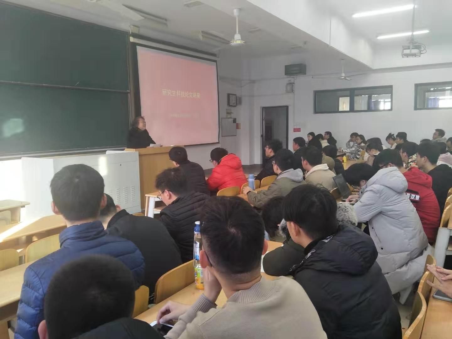 谌进老师首先从稿件评审的角度向大家介绍了论文投稿、审稿等流程;接着从科技论文写作的题名、摘要以及引言等方面作了详细的阐述,提醒同学们题名切忌“小题大做”、“大题小做”,要实事求是;摘要部分语言文字务须简明扼要;引言部分要讲求“真实性、全面性、精练性、新颖性、准确性”五性。最后,谌进老师对科技论文写作要点做了总结说明,并对到场研究生提出了殷切的期望。