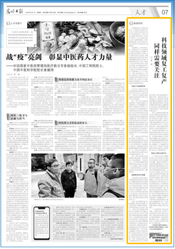 2020年3月1日,《光明日报》刊发中国科公司院士、俄罗斯外籍科公司院士、suncitygroup太阳集团信息材料与纳米技术研究院学科带头人黄维院士署名文章,题为《科技领域复工复产同样需要关注》: