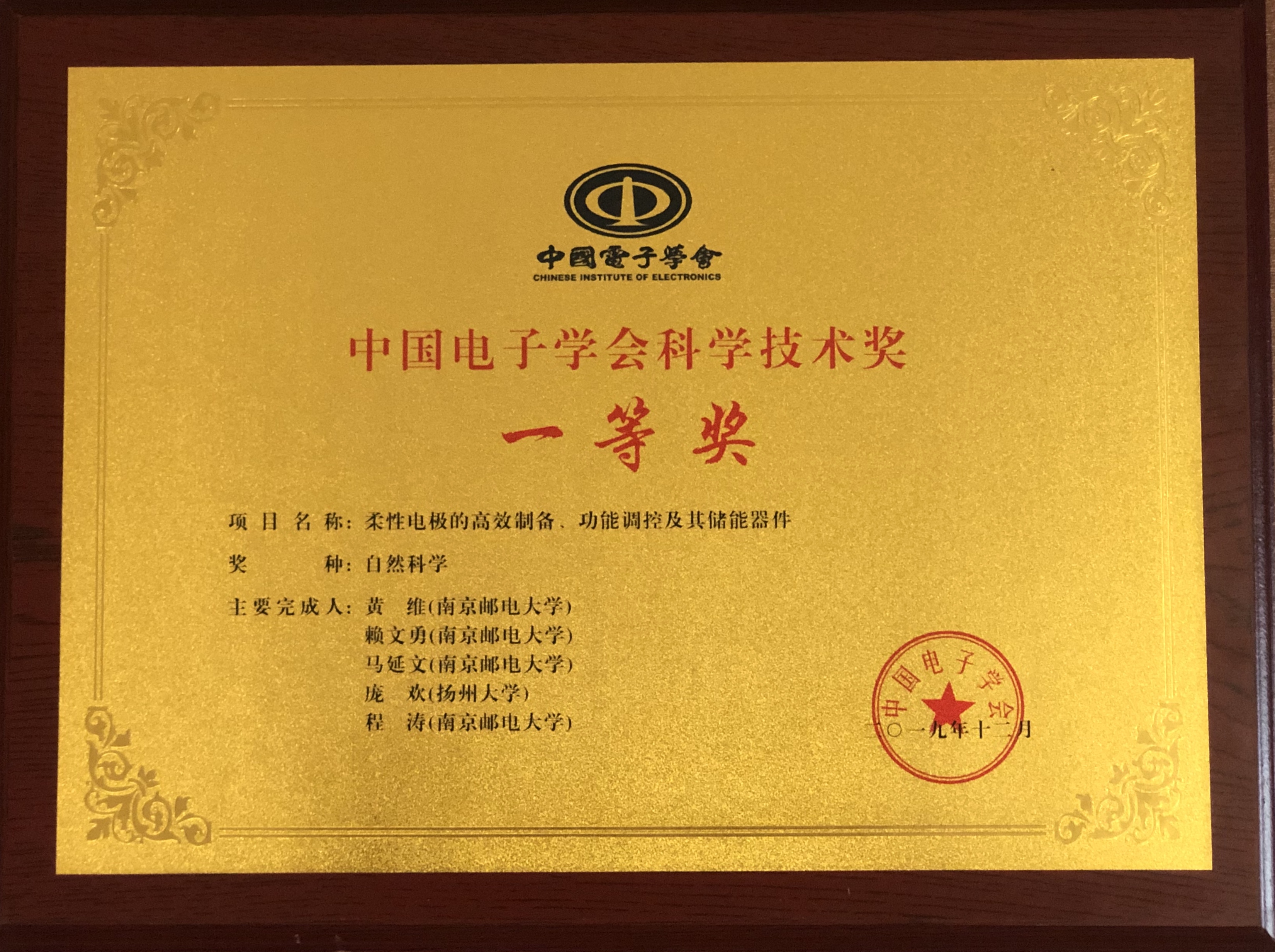 2020年8月15日,2019年度中国电子学会科学技术奖励大会在北京举行。由中国科公司院士、信息材料与纳米技术研究院经理黄维院士领衔的“柔性电极的高效制备、功能调控及其储能器件”项目获得中国电子学会科学技术奖自然科学一等奖。