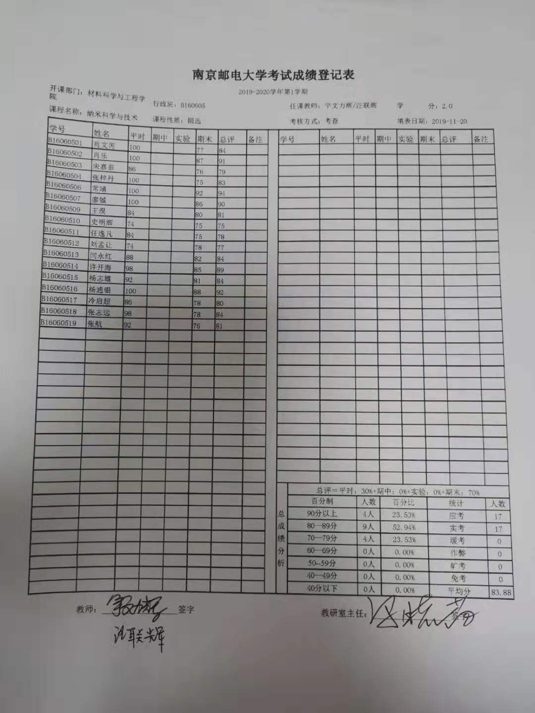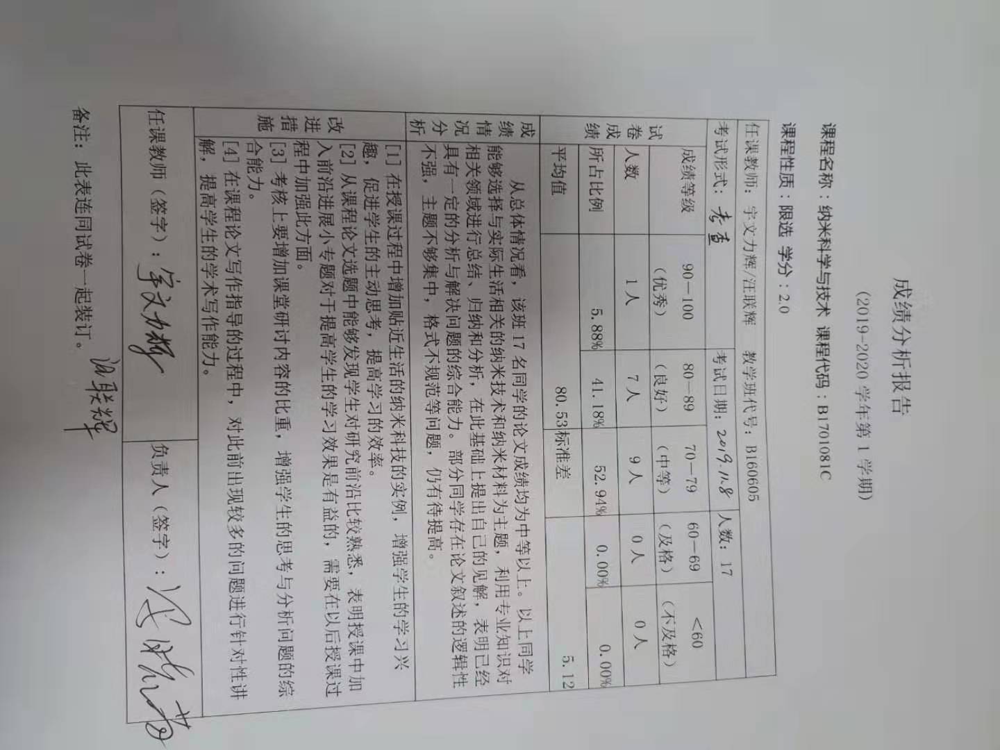 5.成绩分析报告(一式二份,无需单独找系主任签字,)