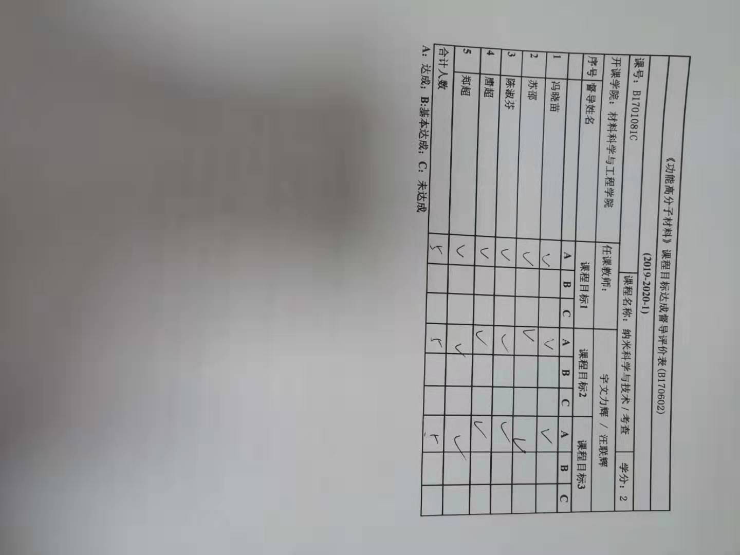 高分子专业的课程需额外提交以下材料: