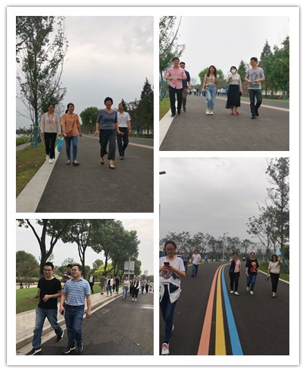 下午4时,在简单的集合后,公司教师开始了环湖健身走,从材料学科楼西门出发,到羊山湖公园环湖走完一圈回到起点即算完成。老师们一边步行,一边交流,一路欢声笑语,很快完成了健身走活动。