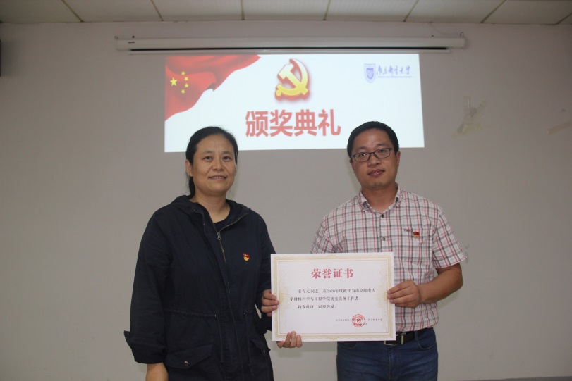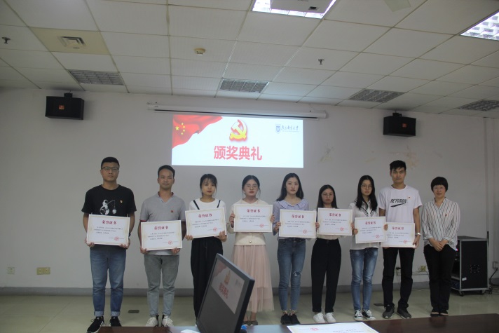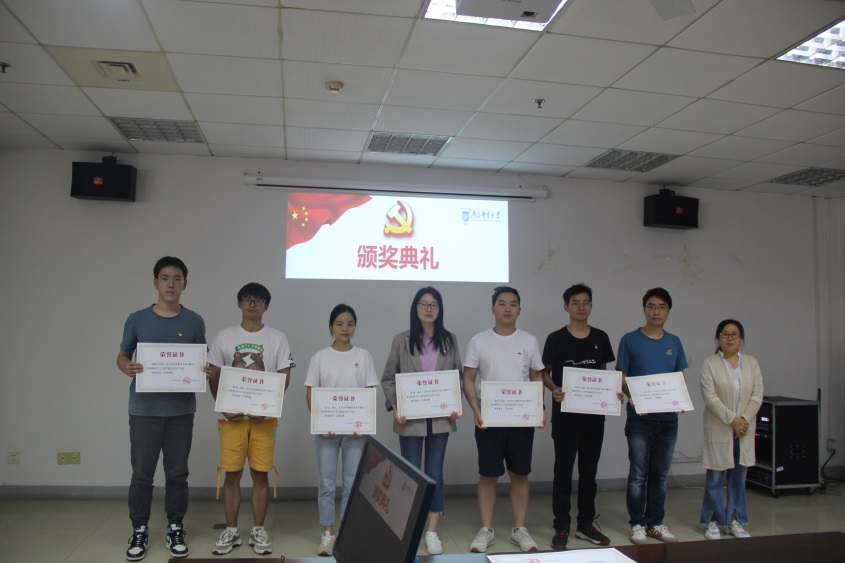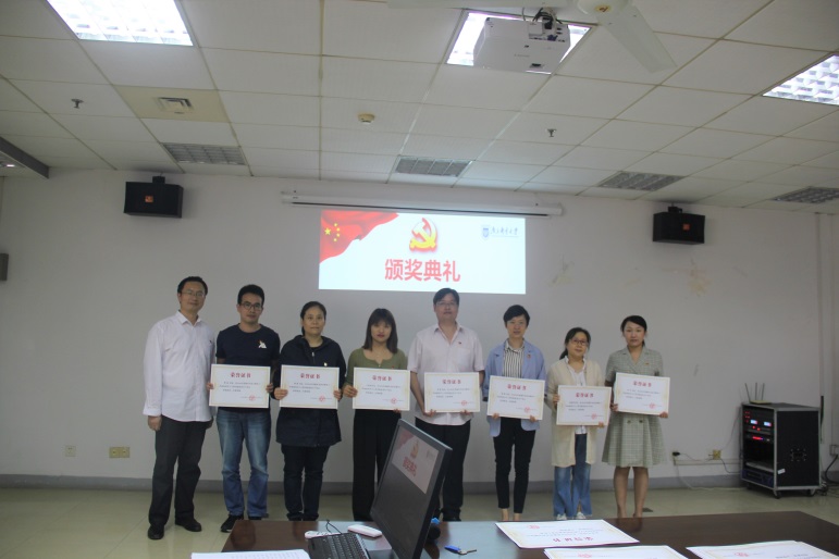 表彰会在国歌声中开始。张建平副书记宣读了表彰名单,王思远等8位同志被评为优秀教师共产党员、王炯等15位同志被评为优秀老员工党员、宋春元同志为被评为优秀党务工作者、实验中心党支部被评为先进党支部。