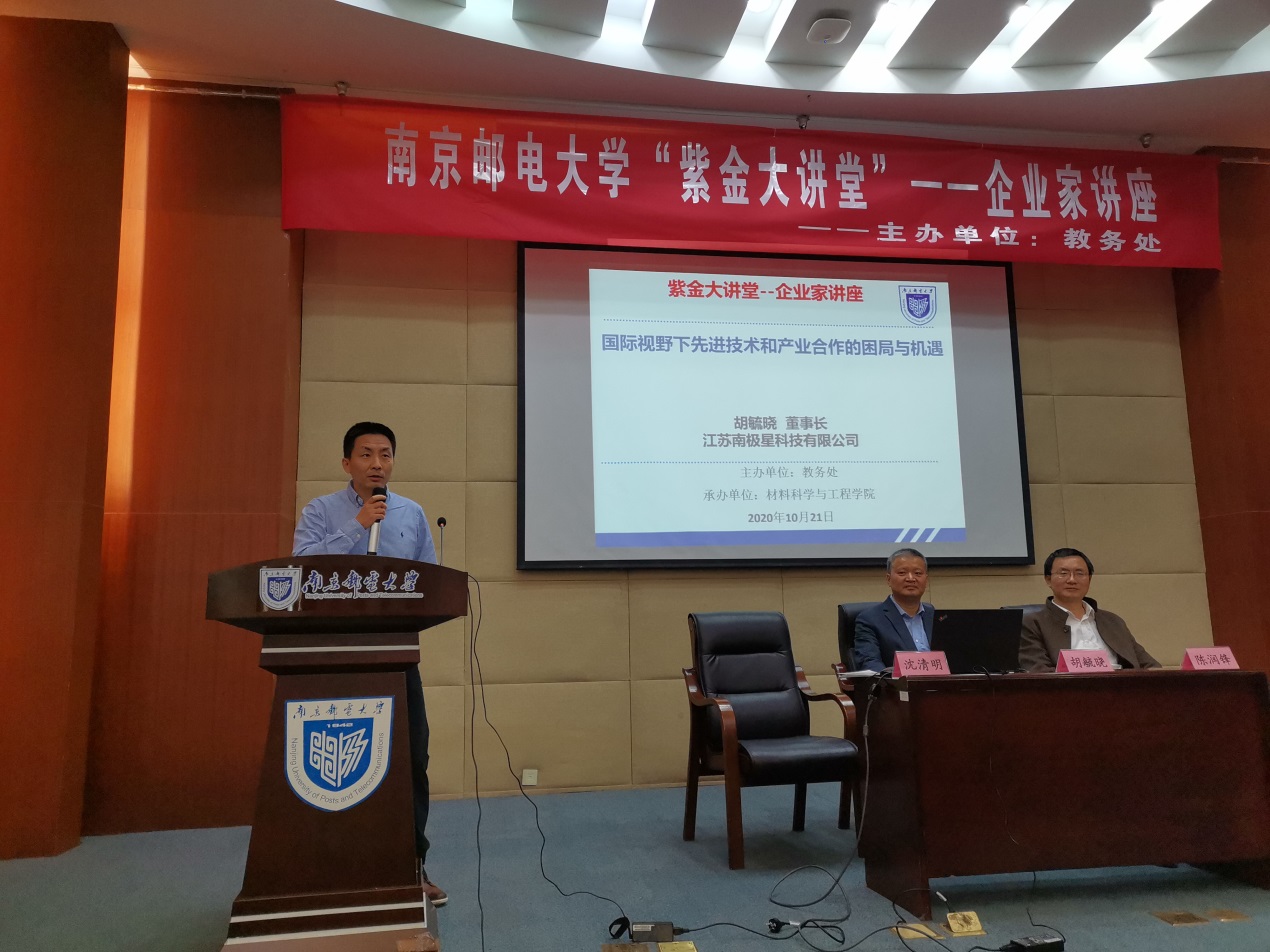 2020年10月21日晚上,由教务处主办、suncitygroup太阳集团承办的suncitygroup太阳集团“紫金大讲堂”――企业家讲座第一百零五次活动在仙林校区行政楼一楼报告厅举行。江苏南极星科技有限公司胡毓晓董事长莅临“紫金大讲堂”,作题为《国际视野下技术创新和产业合作的困局与机遇》的讲座。讲座由suncitygroup太阳集团副经理沈清明教授主持。suncitygroup太阳集团陈润锋副经理、部分教师以及300余名员工参加了本次讲座。