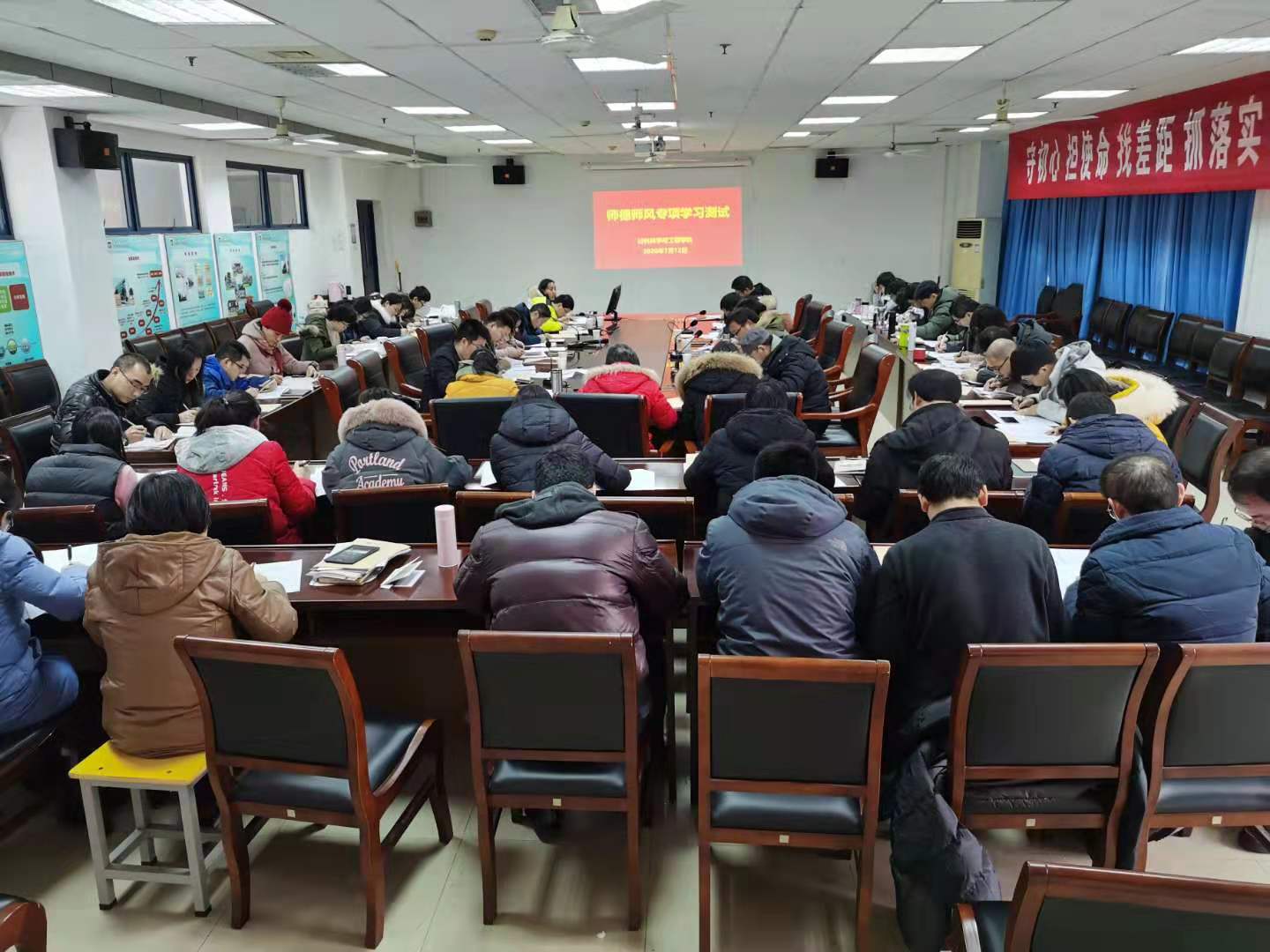 会后,公司组织教师根据《新时代高校教师职业行为十项准则》逐条对照自查,填写《教师年度师德自查情况报告表》,引导所有教职工对师德师风问题知敬畏、存戒惧、守底线,并在会后进行了专项考试,加强学习效果。公司全体教职员工按支部进行了师德师风专项学习考试,考试分设5个考场,考试内容结合教师职业道德规范和《教育部关于高校教师师德失范行为处理的指导意见》《新时代高校教师职业行为准则》《江苏省高校教师师德失范行为处理办法(试行)》《suncitygroup太阳集团教职工处分规定》等文件。