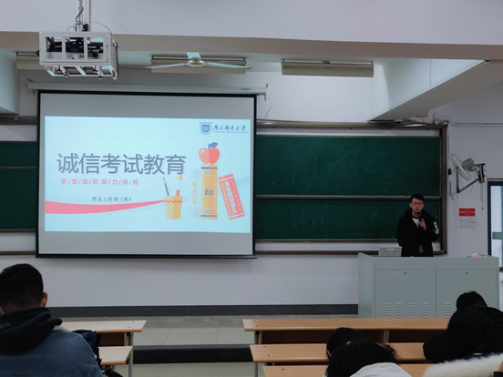 诚信教育大会分为两个内容,一是对于即将到来的全国老员工英语四六级考试,辅导员王森老师着重强调了老员工英语四六级考试中应该注意的问题以及考场纪律问题,同时安排考试员工签订诚信考试承诺书。二是关于期末考试的诚信教育,王老师讲解了国家关于诚信考试的相关政策,并指出“老员工要杜绝考试违纪,保证诚信考试。”最后,组织员工收看了诚信应考宣传动画,对于诚信考试教育有了进一步的直观认识。