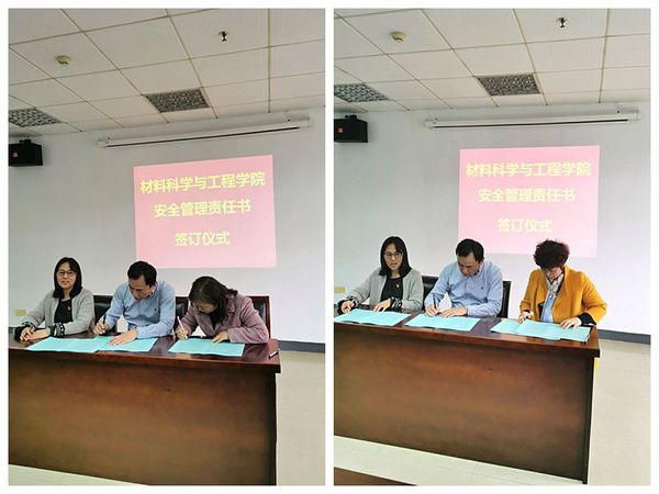 2021年4月13日下午,材料公司在教五413会议室召开全院教职工大会,举行2021年度实验室安全责任书签订仪式,仪明东副经理主持会议。