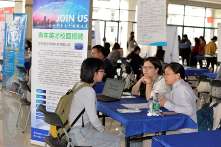 公司高度重视本次招聘会,前期做好了充分的准备。公司党委副书记张建平在招聘现场和各招聘单位进行了交流,毕业班辅导员王森、陈骏多方联系相关企业单位,通过QQ、微信等多个网络平台为本次招聘会进行宣传,帮助毕业生搭建良好的就业平台。本次招聘会上,公司邀请到中国船舶重工集团南京鹏力科技集团有限公司、京东方科技集团股份有限公司等50多家企业单位,其中很多单位的招聘需求都是材料相关专业毕业生。各招聘单位通过展版、面对面交流等方式向同学们介绍了关于我们、企业文化、职业发展方向、人才需求以及选择该单位的理由等。值得注意的是,本次招聘会上,应聘毕业生在投递个人简介上相比于以往更为谨慎,在关心薪资前景的同时也更为详细地咨询合同签订的相关事宜,少了些盲目,多了些理性。