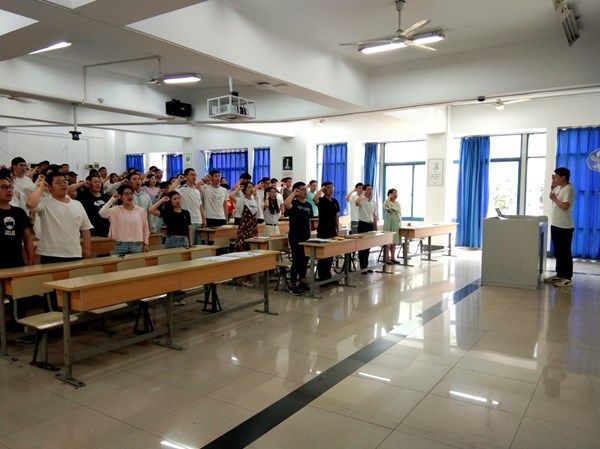 本科生党支部书记赵赫男带领全体党员重温入党誓词,通过重温誓词,强化党员的责任意识、担当意识,鼓励毕业生党员在新时代肩负起老员工党员的历史使命。