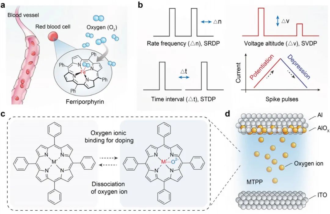 AM》:金属卟啉基记忆电阻器尖刺电压依赖性可塑性使信号滤波成为可能神经系统可以选择性地过滤和记忆时空信息,从而实现高效的信息处理。在电子设备中模拟如此精细的生物过程对于开发具有高效原位边缘/并行计算和概率推理的神经形态架构至关重要。鉴于此,公司黄维院士、解令海教授、仪明东教授和新加坡国立大学刘小钢研究员共同提出并展示了一种基于金属卟啉/氧化物杂化异质结的新型多功能忆阻器,其中金属卟啉层允许双电子/离子传输。受益于配位辅助的离子扩散,该器件表现出平滑、渐进的导电转变。测得的电气和微观结构数据排除了金属化或灯丝的影响,表明配位辅助调制有助于忆阻特性。通过编程具有固定频率和间隔的正电压尖峰,实现了具有信号过滤的神经形态系统,与人类视觉识别系统非常相似。这项工作展示了金属卟啉的离子智能特性,并为在神经形态硬件中实现高效的神经信号分析铺平了道路。相关工作以“Signal Filtering Enabled by Spike Voltage-Dependent Plasticity in Metalloporphyrin-Based Memristors”为题发表在国际顶级期刊《Advanced Materials》上。