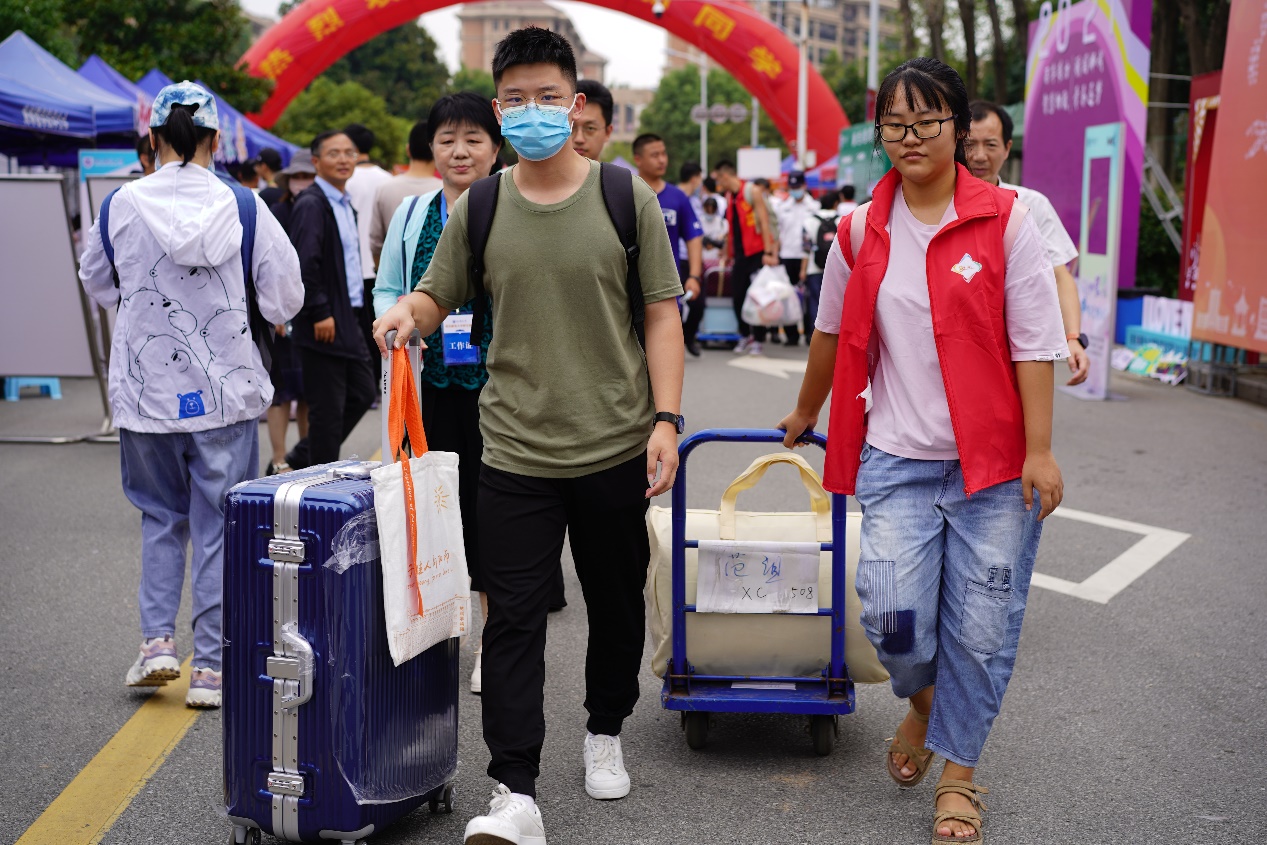 新生报到由班主任助理负责现场办理手续,新生和班主任助理在线上已经有较长时间的交流,彼此很熟悉,核验材料、刷卡注册、填表登记、拍照留念等有条不紊,报到效率很高,高年级志愿者负责帮忙拿行李并送新生到宿舍,让每一个远离家门的新生都能感受到家的温暖。