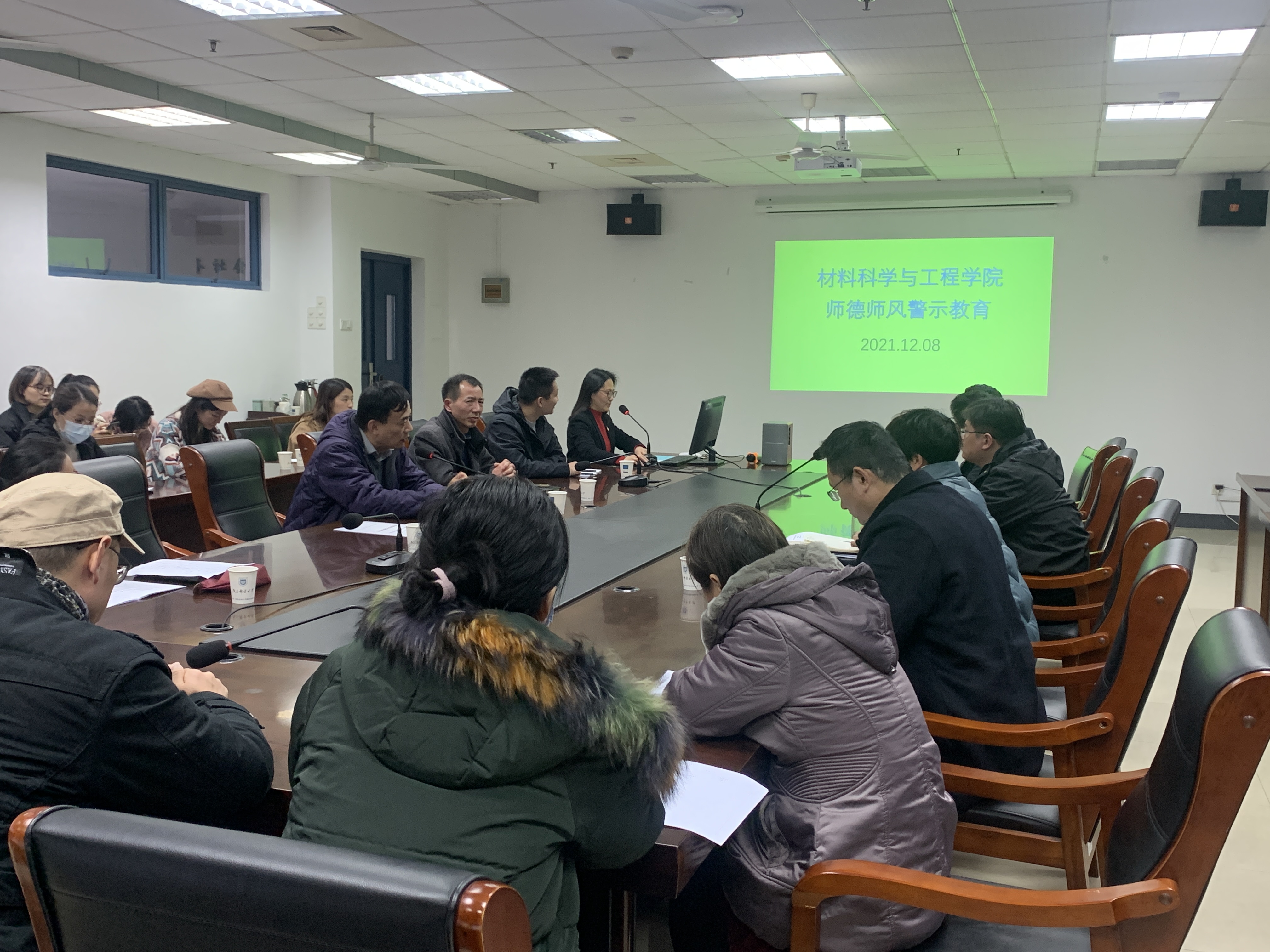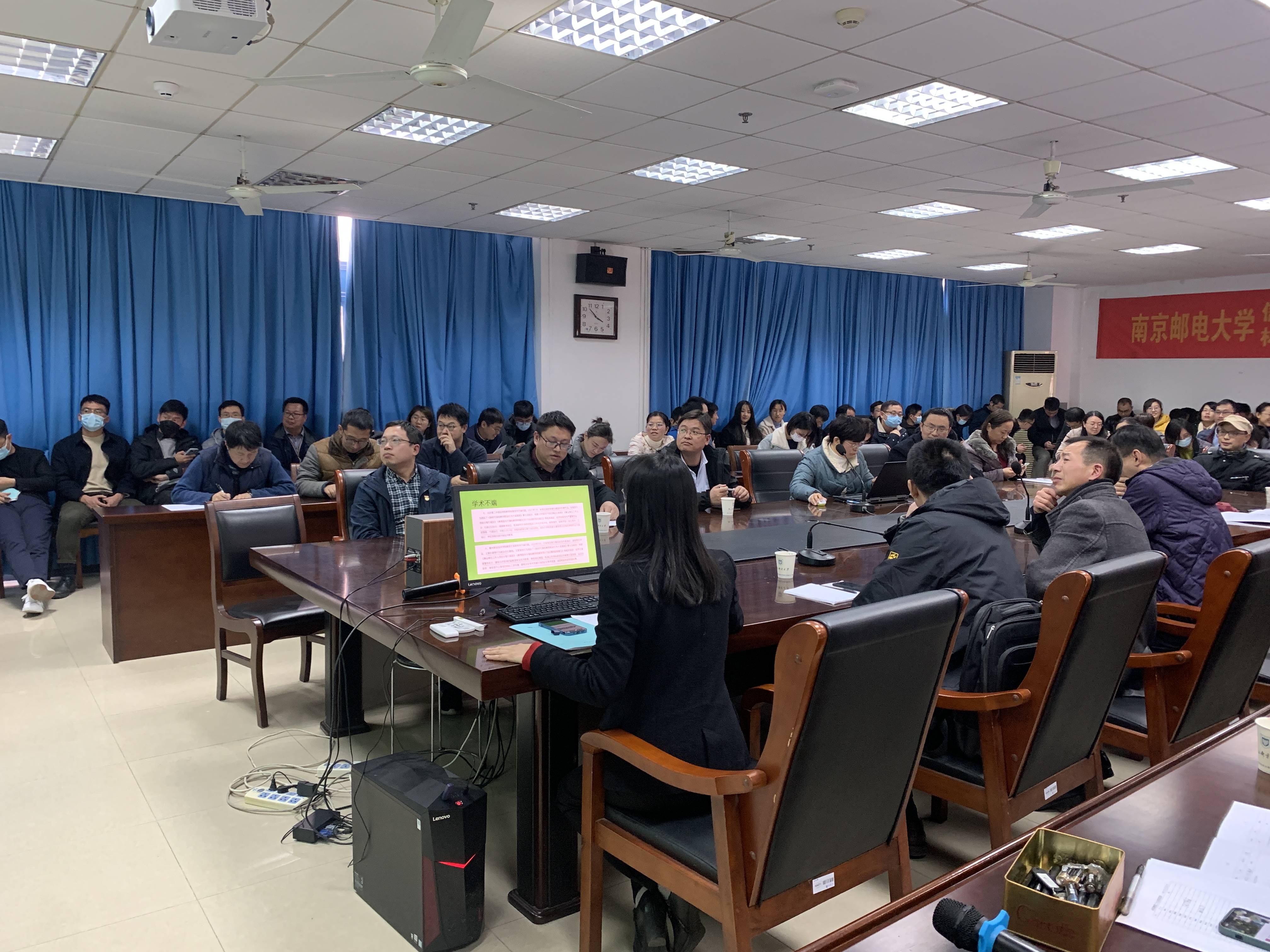 赵书记带领大家分析了教育部网站通报的高校教师师德失范典型案例,指出存在的典型问题:政治立场错误、社交媒体发表错误言论、课堂发表错误言论、学术不端、违反社会公德、违反财务制度等,要求全体教职工要加强师德师风教育,强化法治教育,纪律规范教育,要保持对违规行为的高压态势。