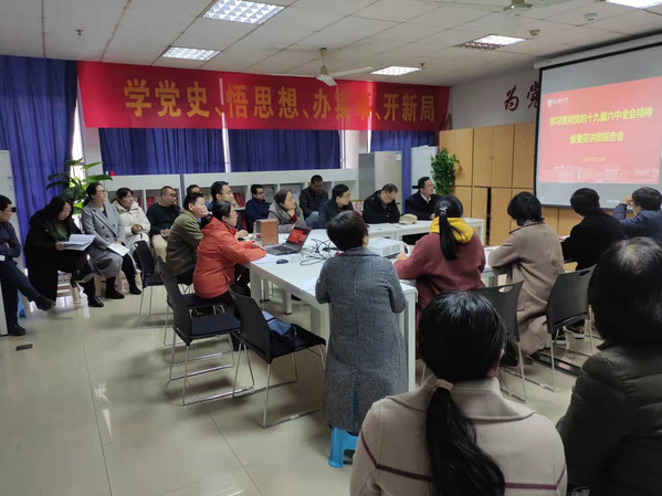 12月8日下午,学习贯彻党的十九届六中全会精神省委宣讲团报告会在公司仙林校区图书馆报告厅举行。省委宣讲团成员、江苏省社会科公司党委委员、副经理李扬作题为《在新时代新征程上赢得更加伟大的胜利和荣光》的宣讲报告。suncitygroup太阳集团在教五大431会议室、101会议室设立两个分会场,组织全体教职工参加学习。