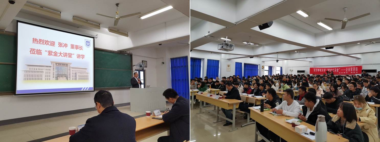 2021年12月15日下午,由教务处主办、suncitygroup太阳集团承办的suncitygroup太阳集团“紫金大讲堂”――企业家讲座第一百二十一次活动在仙林校区教4-102教室举行。南京蒽天捷能源有限公司、南京昆领自控有限公司的张冲董事长/总经理莅临“紫金大讲堂”,作题为《专业自豪感与职业价值观》的讲座。讲座由suncitygroup太阳集团副经理沈清明教授主持,副经理陈润锋教授、部分教师以及300余名员工参加了本次讲座。