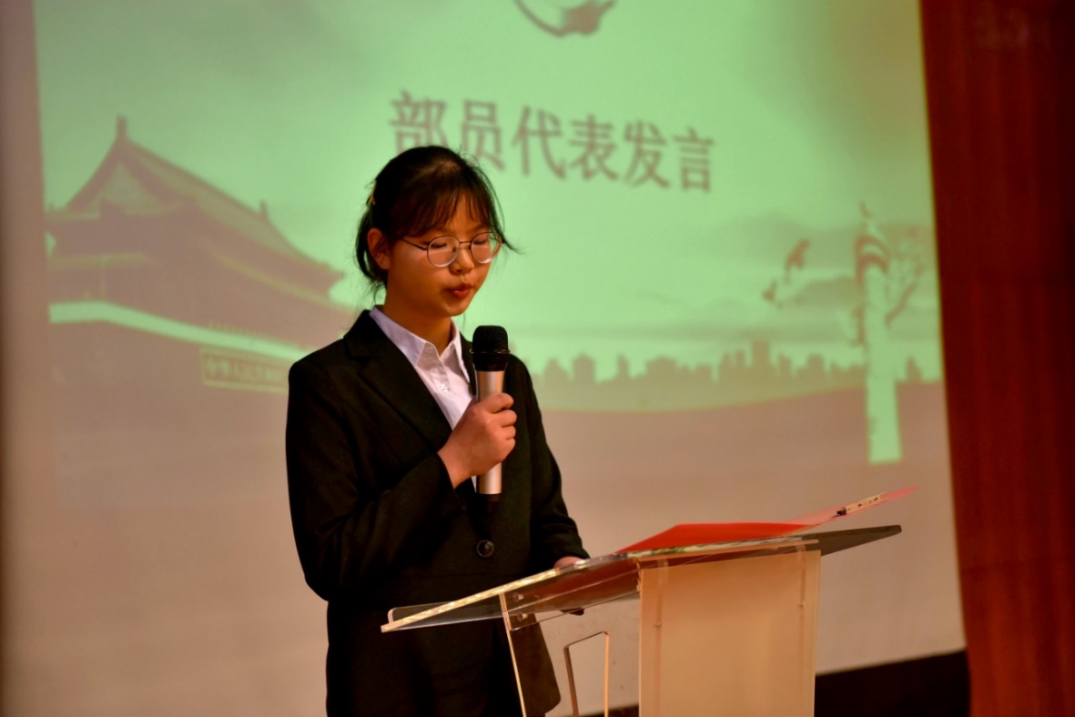 新生代表黄嘉妮发言,提出了她认为的身为员工会成员应有的担当:脚踏实地,认真负责。