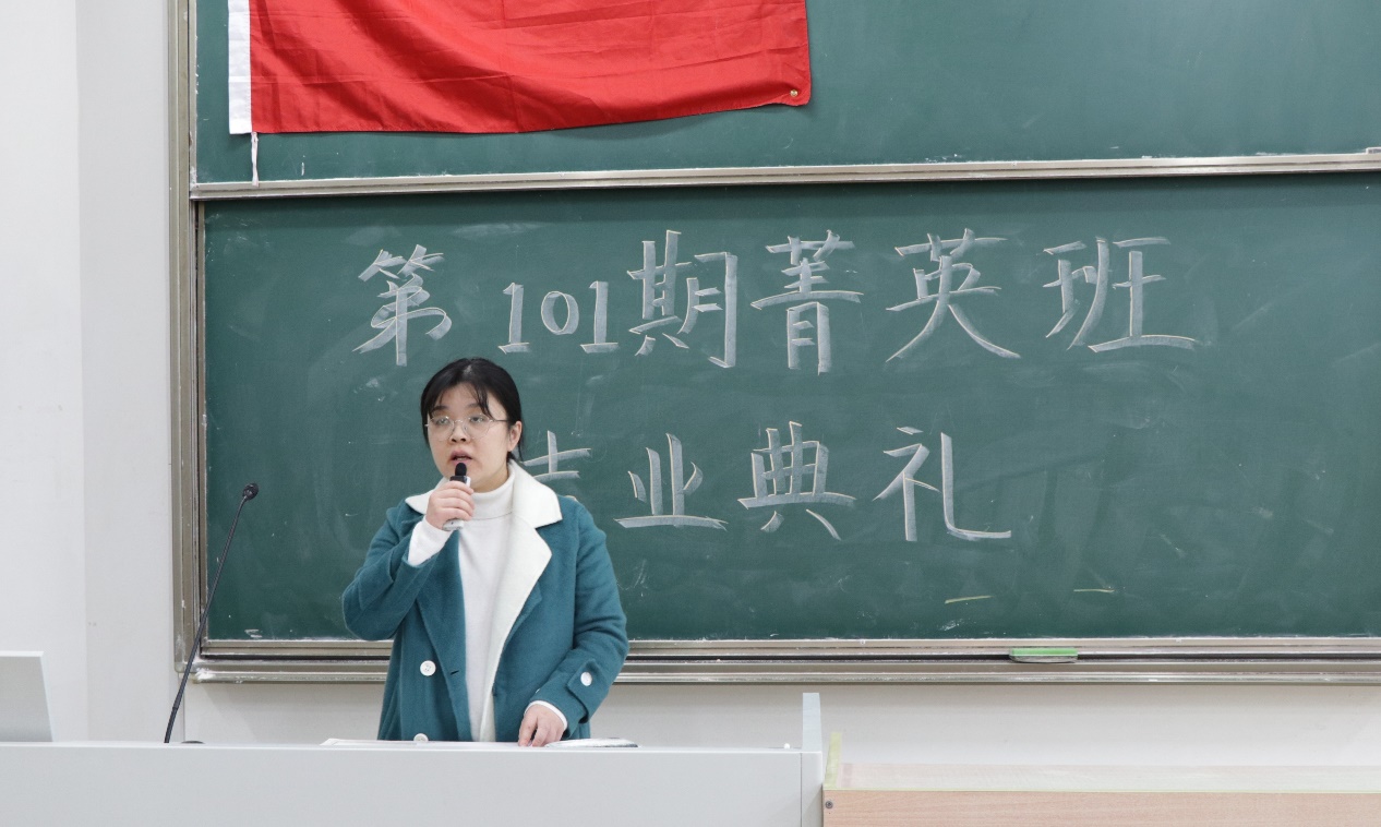 李娜老师的讲话以“学习理论、坚定信念、提高自己”为主题,总结了菁英班的学习情况,简明扼要地告诉了同学们如何提升个人能力,增长个人水平,激励了在座的菁英班同学们要多向优秀学员代表学习。