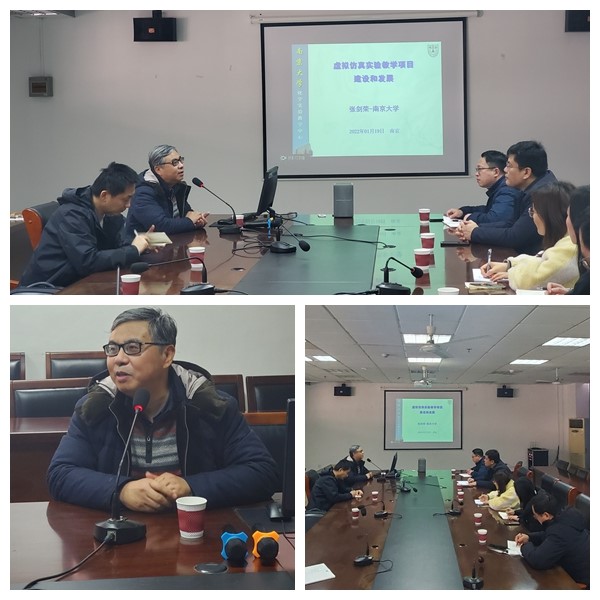 2022年1月19日上午,材料公司邀请国家级实验教学示范中心联席会化学化工组组长、南京大学张剑荣教授在教5-413大会议室,开展了题为“虚拟仿真实验教学项目建设和发展”专题讲座,沈清明副经理主持,公司仪明东副经理、系主任、实验中心主任、虚拟仿真实验教学项目负责人和项目组成员以及部分教师参加。