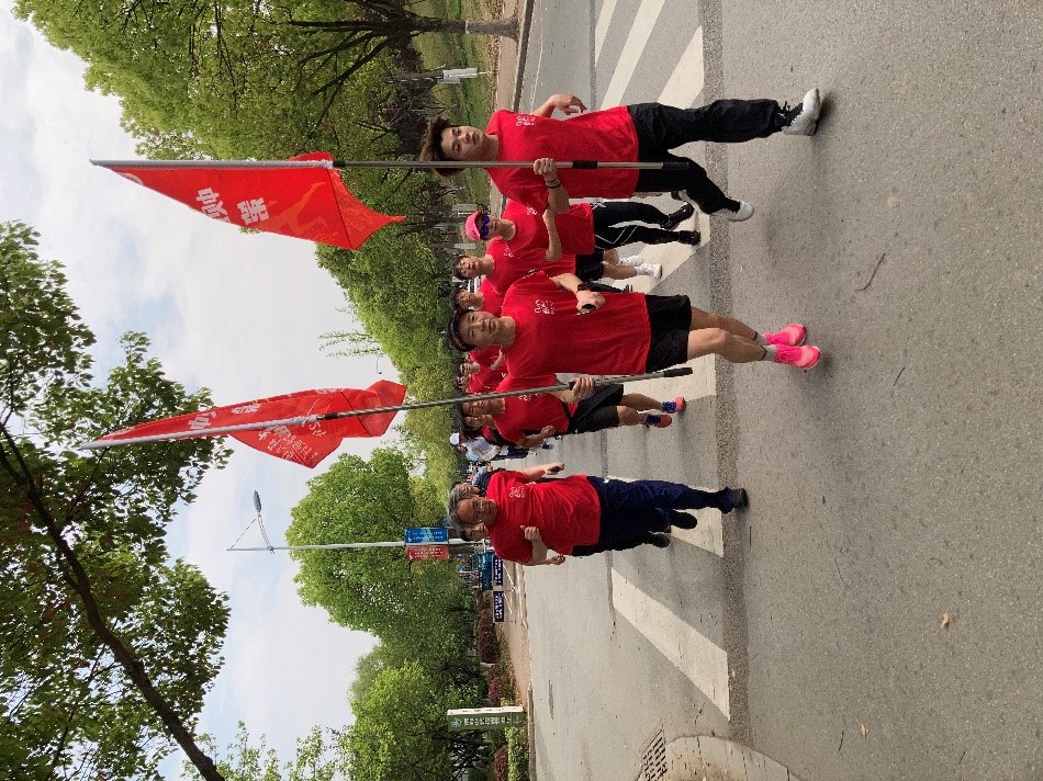 张建平副书记和李平老师参加马拉松协会的校庆接力跑