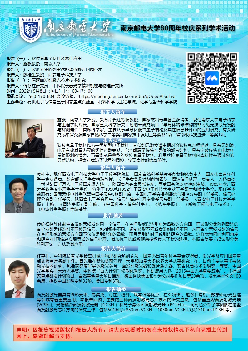南京大学施毅教授&西安电子科技大学廖桂生教授&中科经理春光机所佟存柱研究员学术报告