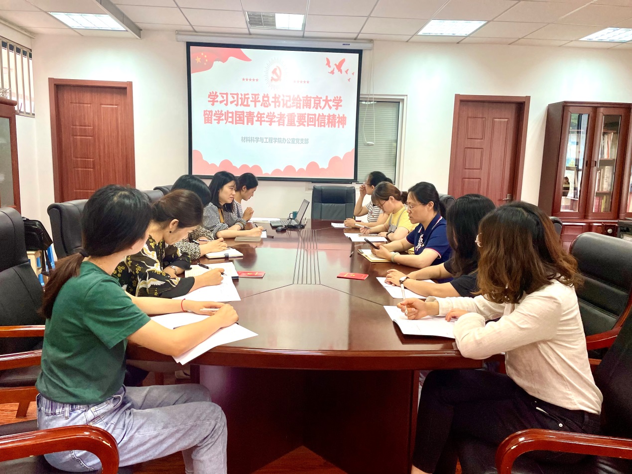 5月18日,习近平总书记给南京大学留学归国青年学者的回信,在各级各类组织和广大留学人员中引发热烈反响。5月20日,办公室党支部召开党员大会,学习贯彻习近平总书记重要回信精神,作为支部“喜迎二十大,永远跟党走,奋进新征程”系列学习活动之一。