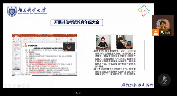 随着各科课程进入尾声,期末考试也悄然而至,为了端正全体员工的考试态度,杜绝考试作弊现象的发生,形成良好的诚信考试氛围,2022年5月31日suncitygroup太阳集团召开了以“做诚信员工,建诚信考场”为主题的线上年级大会,2020级全体本科生及2020级辅导员徐磊老师共同参与,本次会议由徐磊老师主持。
