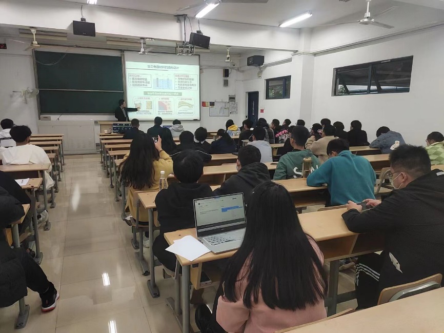 本次讲坛的主题为:新能源材料与器件研究的现状与趋势——面向未来的清洁能源科技。金教授先从人类文明发展史着手,强调了能源和材料的重要性,随后从能源转化材料和技术、能源存储材料与技术和能源催化材料与技术三个方向深入浅出地给老师和同学详细而生动的讲述了新能源材料与器件研究的现状和趋势,并分享了其课题组近年来在太阳能电池、廉价规模化储能电池和催化固氮等领域获得的创新成果和宝贵经验。最后,金钟教授还对未来新能源材料与器件领域短、中和长期的清洁能源技术研究方向和需要解决的关键科学问题进行了总结和展望。老师和同学们在认真听取了金钟教授的精彩讲座,反响强烈,并与金教授进行了深入探讨。金钟教授详细解答了员工对于目前电动汽车主要利用火力发电为什么叫新能源汽车的疑虑,并和同学们深入讨论了全固态锂离子电池面临的关键问题、锌电池的发展前景和高分子能源材料的研究现状和应用前景等诸多问题。