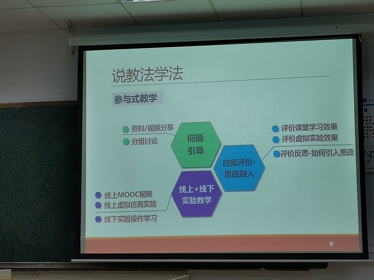 经过两院初审,本次参加课程思政竞赛共四组青年教师,参加教学创新竞赛共两组青年教师。大赛第一部分是先进行课程思政竞赛评审,四组教师分别进行5分钟说课和10分钟讲课;第二部分是进行教学创新竞赛评审,两组参赛教师分别结合教学大纲与教学实践,均进行了15分钟的教学设计创新汇报。专家评委依据选手的汇报进行提问交流,对于课程思政,评委们给出了具体的建议,如何在课程中润物尽无声地融入思政,以及如何自信的向员工展示。贝尔英才公司徐欣副经理分享了他多年来参与竞赛以及指导其他教师参赛的经验,总结了一些思路,建议根据现有课程教学过程中存在的问题,提出为何要进行教学创新?有条理地讲述教学创新之处,对此创新教学前后取得的成果,最后坚定创新教学改革的信心,提出继续努力的决心。其他评委也指出一些其他的问题,如在授课的过程中一定要注意语音语速,注重教态,积极与员工交流;在教学过程中注重板书设计,需要有逻辑性,做到重点突出;教学不能像作报告,要考虑员工的接受程度,多观察员工反应。