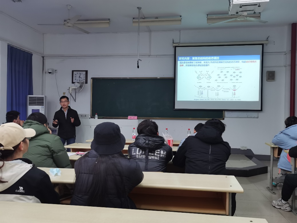 2022年11月30号下午,“菁英计划”活动系列-IAM大讲堂邀请陶冶教授为“菁英计划”学员作题为《动态响应有机光电材料与器件》的专题讲座。全体2021级“菁英计划”学员参加学习,suncitygroup太阳集团经理助理宋春元教授主持讲座。