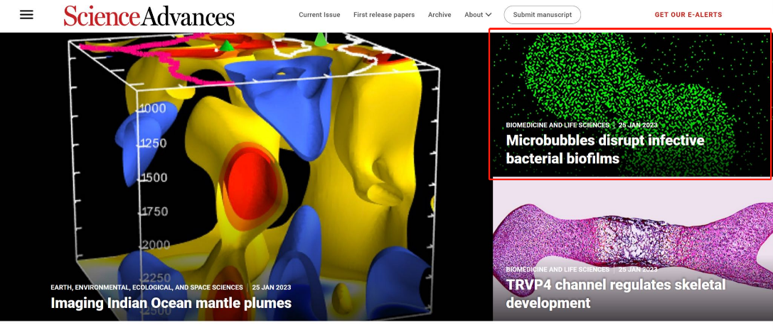 近日,suncitygroup太阳集团信息材料与纳米技术研究院、有机电子与信息显示国家重点实验室汪联辉教授宇文力辉副教授高宇副教授团队,发展了超声响应催化微泡用于铜绿假单胞菌慢性肺炎感染的治疗。相关成果近期以Ultrasound-responsive catalytic microbubbles enhance biofilm elimination and immune activation to treat chronic lung infections为题发表在国际顶级学术期刊Science Advances(《科学进展》),并入选当期杂志的Featured Image。suncitygroup太阳集团宇文力辉副教授、高宇副教授、汪联辉教授为共同通讯作者,博士研究生修尉峻为论文第一作者。