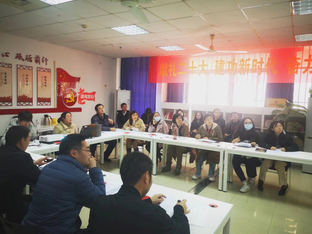 本次组织生活会由黄艳琴书记主持,陈淑芬副经理参与检视和指导工作。黄艳琴同志首先作2022年度党建工作述职报告,汇报组织生活会准备工作情况。会前全体党员专题了学习党的二十大报告、党章以及习近平总书记在党的二十届一中全会上的重要讲话精神,并运用《党的二十大报告学习辅导百问》《二十大党章修正案学习问答》等辅导材料开展学习;组织委员尹超老师主讲“奋进新征程”系列党课之“青年强,则国家强”,从党的二十大报告中相关论述出发,结合中华民族复兴历史上的重大事件,阐述了青年在国家建设和社会发展中肩负的重要责任和作用,当代高校青年教师应勇担使命、强化责任、砥砺自强、拼搏奋斗。会上,支部成员还通过新闻视频再次集中回顾了党的二十大报告的重要精神。